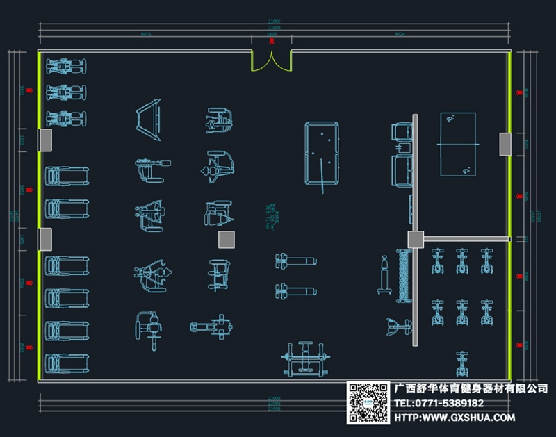 此方案要求面积小于308m²,适用于企事业单位、酒店会所、楼盘社区、学校、商用等健身场所,能满30-50人同时健身使用。(方案根据场地空间大小、预算、产品需求等进行配置仅为启发性参考)