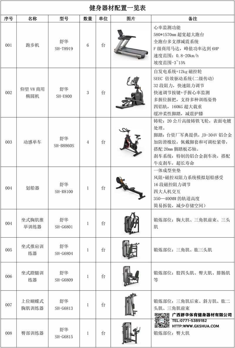 1.星空xkV9智能跑步机SH-T8919*6台-独立仪表-简洁大气,全新外观设计,健康运动新选择;心率监测功能,可通过手握心率、无线心率带等不同方式实时采集心率数据;580*1570mm超宽超大跑台-跑感舒适,跑台整体安全稳定;全跑台多支撑减震平台,保证跑台超强支撑力,达到180kg支撑,满足专业健身房需求。F级商用马达-超强马达,AC 3.0HP 交流,峰值功率达到6HP,F级商用品质。速度范围达到0.8-20km/h;V9跑步机可实现跑台扬升功能,坡度范围-3~15%,满足客户不同的锻炼需求。