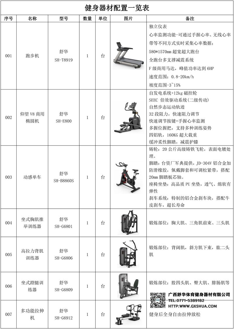 1.星空xkV9智能跑步机SH-T8919*3台-独立仪表-简洁大气,全新外观设计,健康运动新选择;心率监测功能,可通过手握心率、无线心率带等不同方式实时采集心率数据;580*1570mm超宽超大跑台-跑感舒适,跑台整体安全稳定;全跑台多支撑减震平台,保证跑台超强支撑力,达到180kg支撑,满足专业健身房需求。F级商用马达-超强马达,AC 3.0HP 交流,峰值功率达到6HP,F级商用品质。速度范围达到0.8-20km/h;V9跑步机可实现跑台扬升功能,坡度范围-3~15%,满足客户不同的锻炼需求。