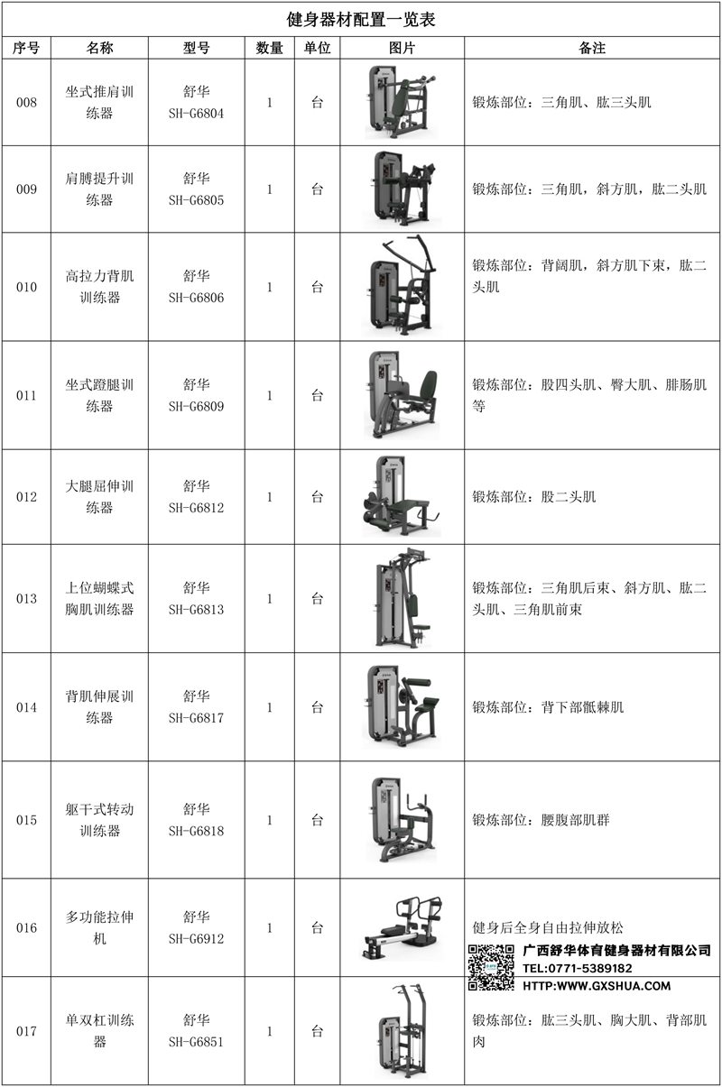 9.星空xk肩膊提升训练器SH-G6805*1台-主要针对三角肌、斜方肌和肱二头肌等肩部和上肢肌肉群进行锻炼,能够有效增强这些肌肉的力量和耐力,塑造完美的肩部线条和上肢肌肉轮廓。肩膊提升训练器配备了多档位的调节功能,可以根据使用者的身高、臂长以及不同的训练阶段和训练目标,灵活调整训练的角度和阻力,满足个性化的训练需求,无论是初学者还是专业健身人士都能找到适合自己的训练强度。