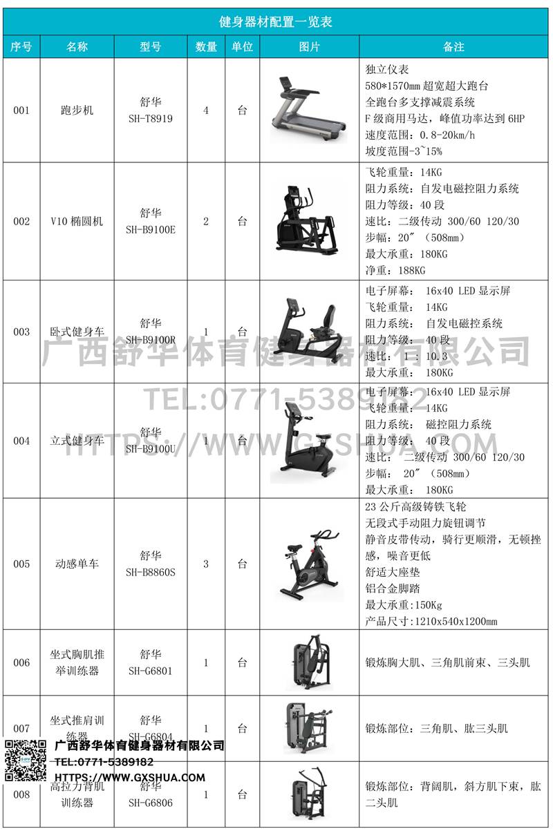 1.星空xkV9跑步机SH-T8919*4台-独立仪表-简洁大气,全新外观设计,健康运动新选择;心率监测功能,可通过手握心率、无线心率带等不同方式实时采集心率数据;580*1570mm超宽超大跑台-跑感舒适,跑台整体安全稳定;全跑台多支撑减震平台,保证跑台超强支撑力,达到180kg支撑,满足专业健身房需求。F级商用马达-超强马达,AC 3.0HP 交流,峰值功率达到6HP,F级商用品质。速度范围达到0.8-20km/h;V9跑步机可实现跑台扬升功能,坡度范围-3~15%,满足客户不同的锻炼需求。